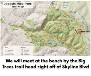 We’ll meet at the bench at the Big Trees trail head leaving to walk to the site together at 4:30 PM.